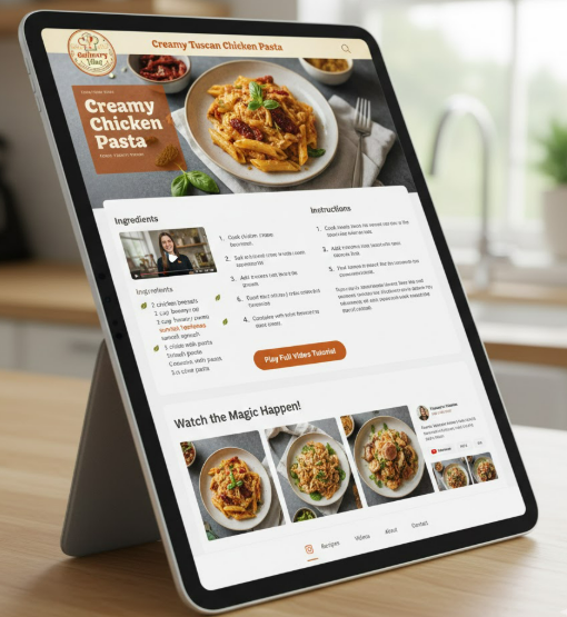 CulinaryVibes needed a visually appealing website to highlight recipes, integrate social media feeds, and reflect the influencer’s vibrant personality. The goal was to engage followers and centralize all content.